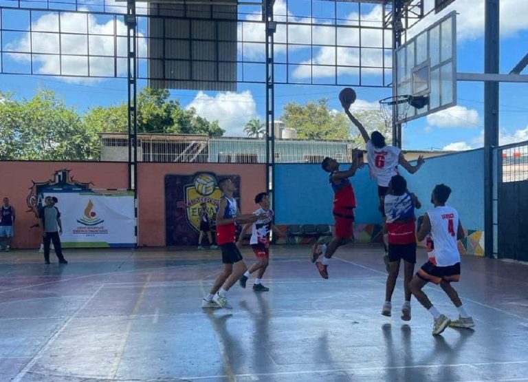 El conjuto de baloncesto representante del sector La Revolución de la comunidad de La Matica de Los Teques, en un...