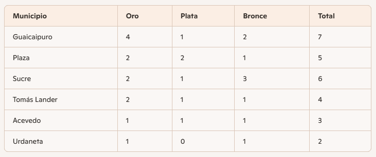 🥇 Guaicaipuro lidera el medallero en la Fase Estadal de los Juegos Deportivos Comunales Miranda 2025